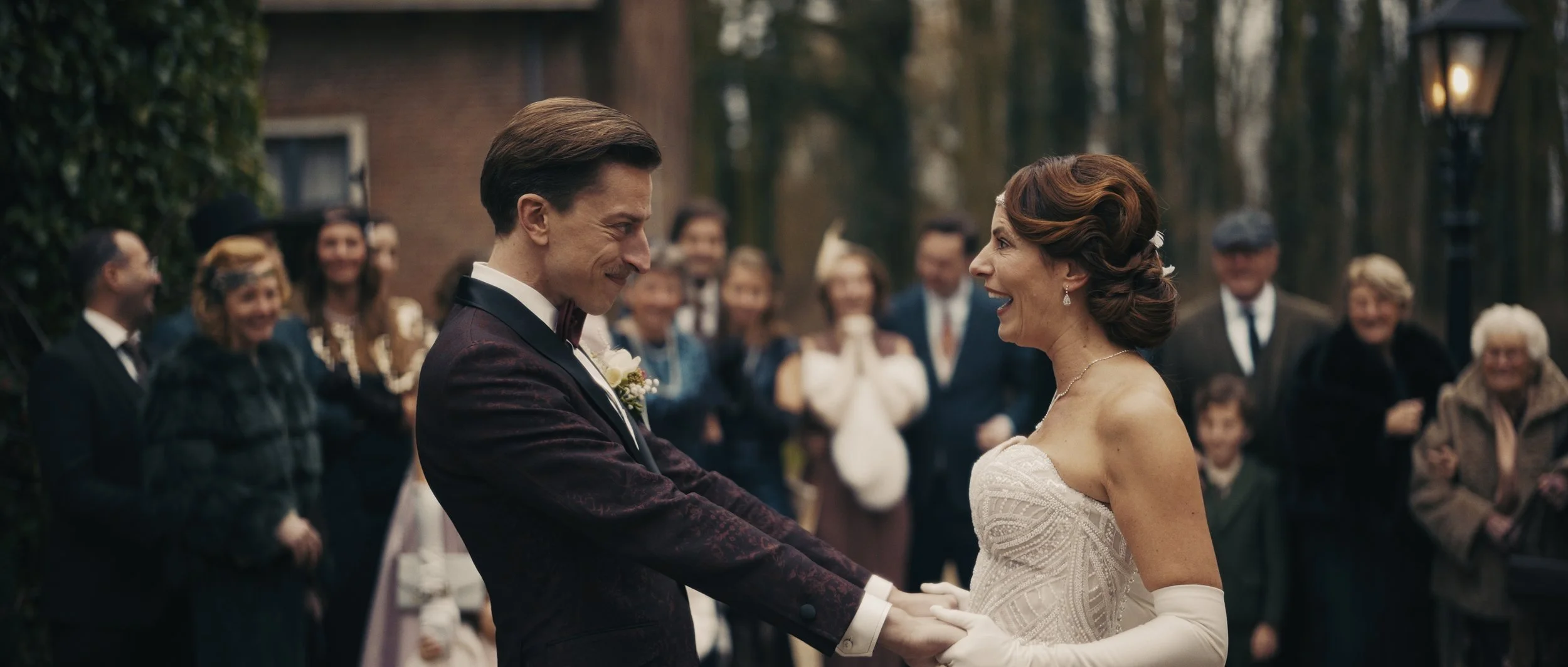 Het Great Gatsby thema van deze bruiloft werd door alle gasten opgevolgd. Hoe gaaf! Iedereen had alles uit de kast getrokken om er helemaal ‘roaring twenties’ uit te zien. En ik moet zeggen… Dat is toch wel heel vet hoor! Eén van de talloze hoogtepunten vond ik de first look met een aantal intimi op de achtergrond. Wat een mooi moment zeg! Het was wel een beetje koud buiten, maar volledig waard.